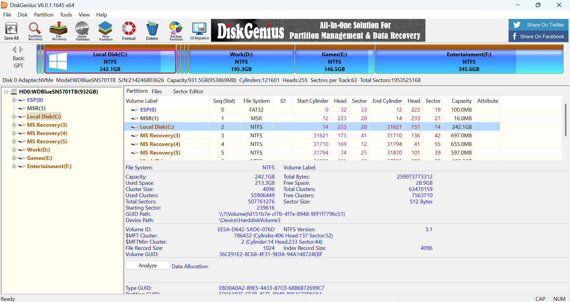 DiskGenius Free Edition comes with a built-in partition manager, which is quite powerful. It allows you to do the following tasks: